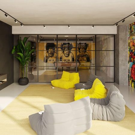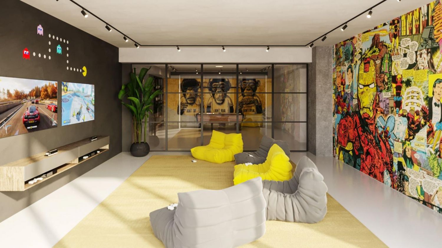 בקומת הקרקע של הפרויקט הוקם מתחם פנאי בגודל של 300 מ״ר הכולל חדר כושר, סלון משותף, חדר משחקים המצויד בשולחן סנוקר ומשחקים נוספים.
